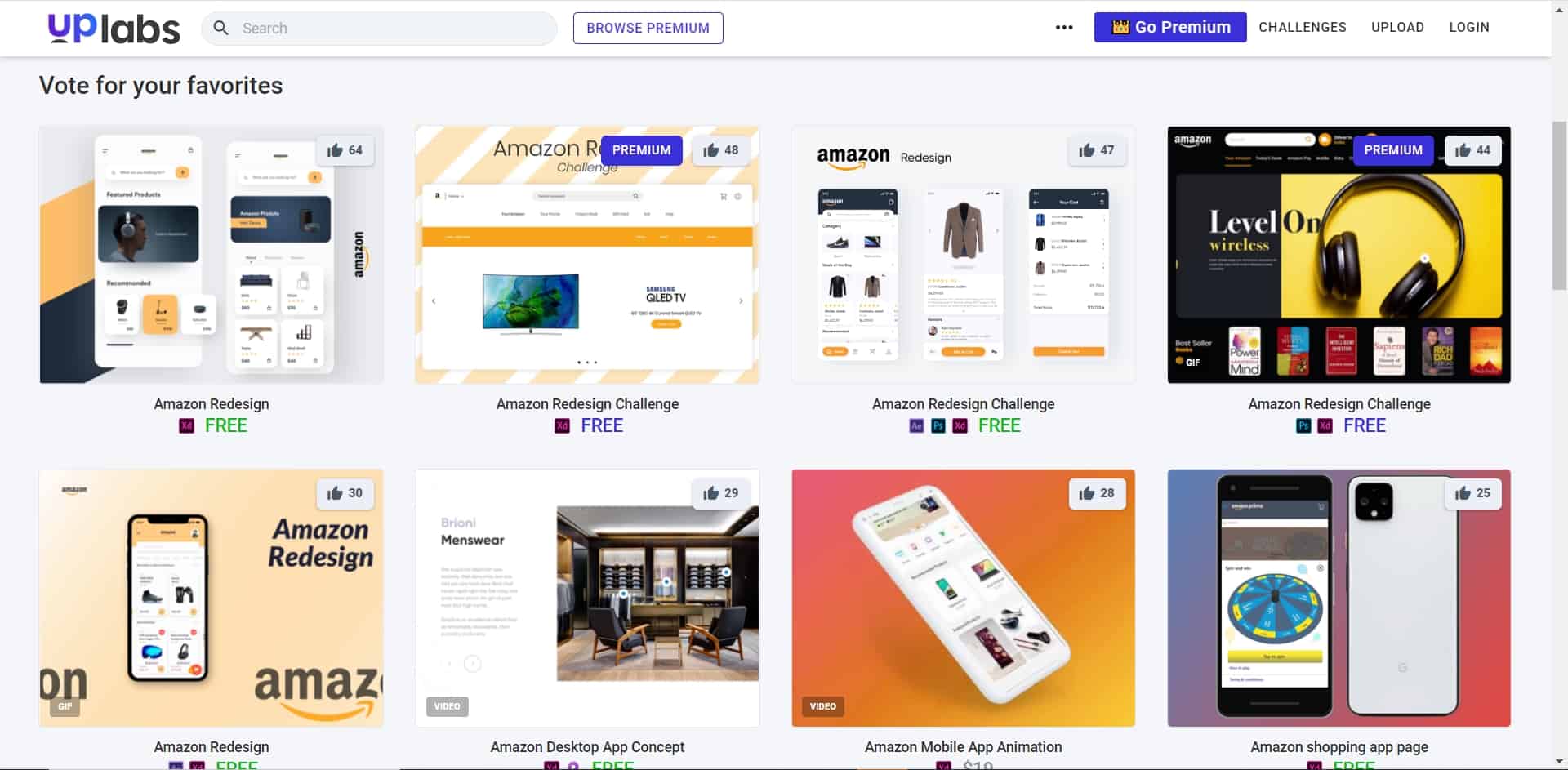 Le site Uplabs, qui héberge des compétitions de redesign de sites ou d’applications populaires, ici Amazon.