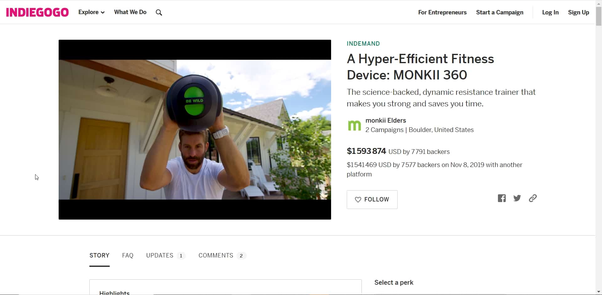 Idéales pour montrer le produit en action, comme cette vidéo d’un équipement de sport, présenté sur la page Indiegogo du fabricant.