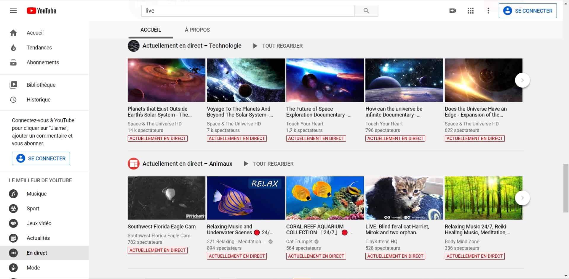 Sur tous types de sujets. – les lives sélectionnés par Youtube.
