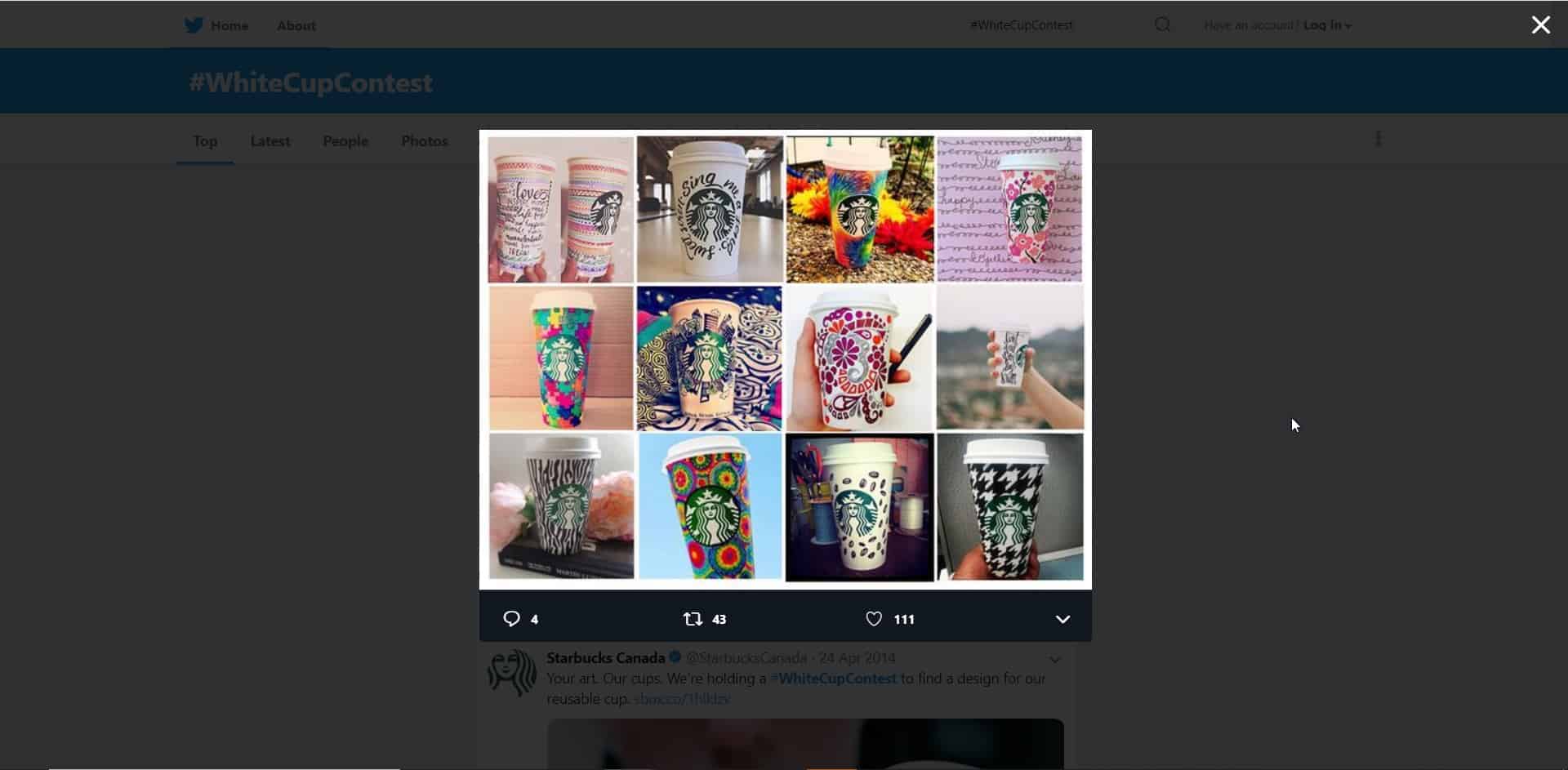 Inciter les utilisateurs à créer des contenus. Ici, Starbucks invite les internautes à partager leurs dessins sur leurs tasses – Voir UGC.