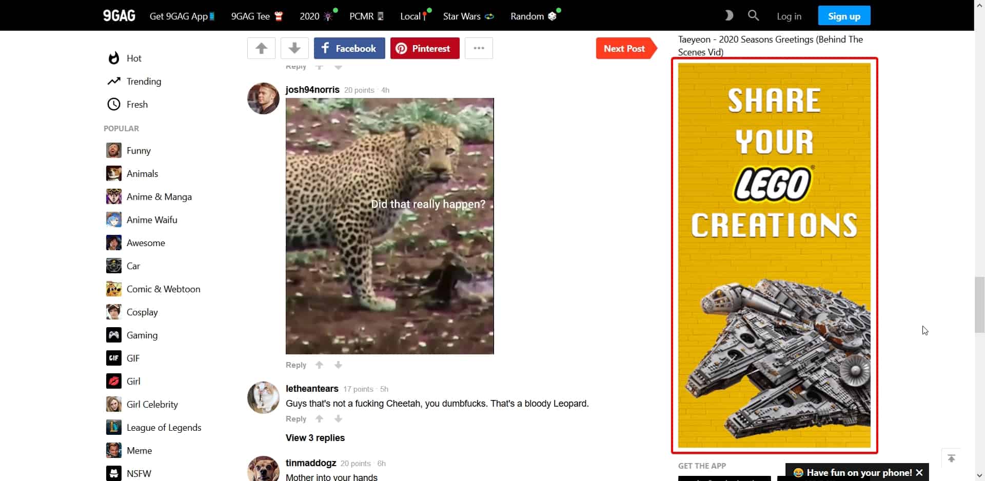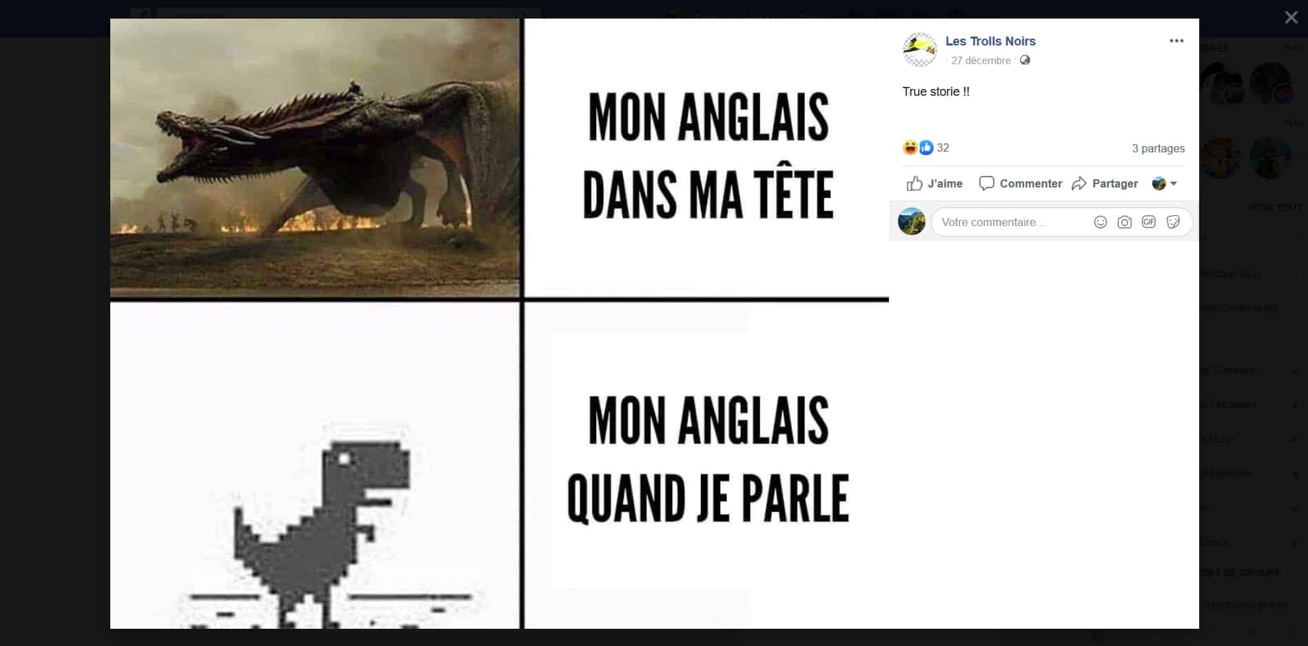 Publier des contenus humoristiques – Page Facebook du bar geek Les Toiles Noires.