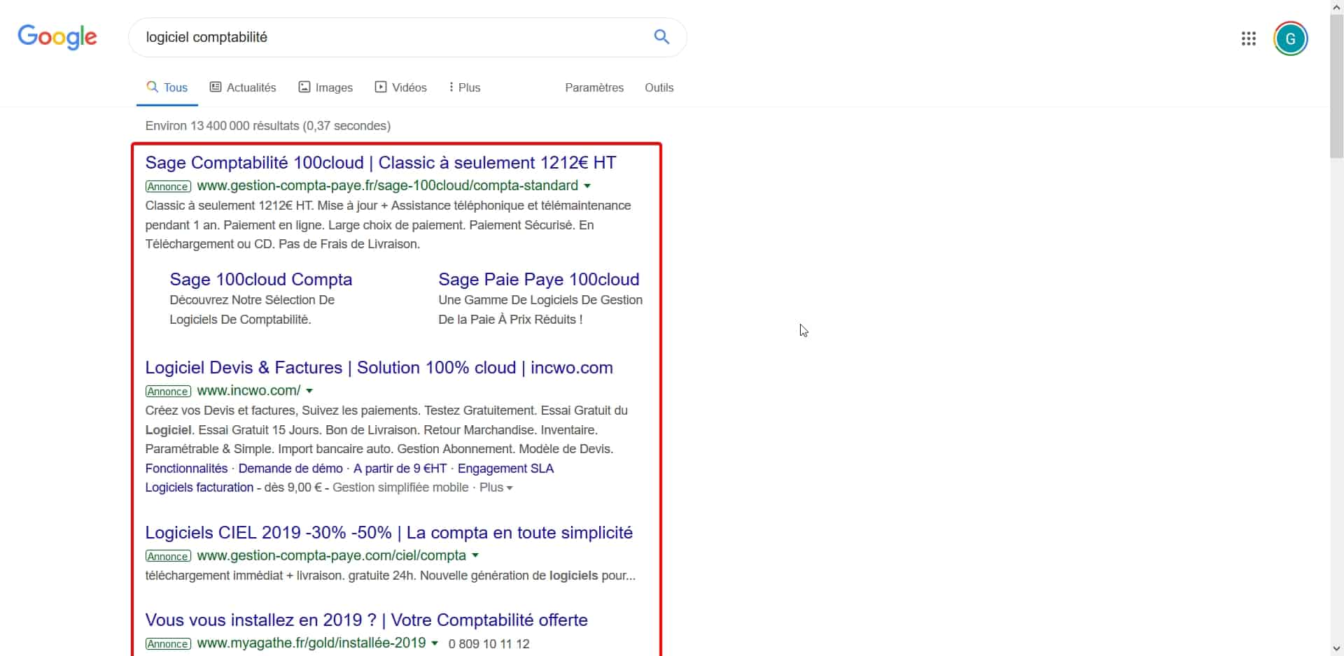 | Les places dans les résultats naturels sont gratuites, à l'inverse de la place réservée aux annonces payantes, mais l'investissement en temps est substantiel. Par ailleurs, les outils spécialisés (recherche de mots-clés, analyse des concurrents) peuvent être chers. |